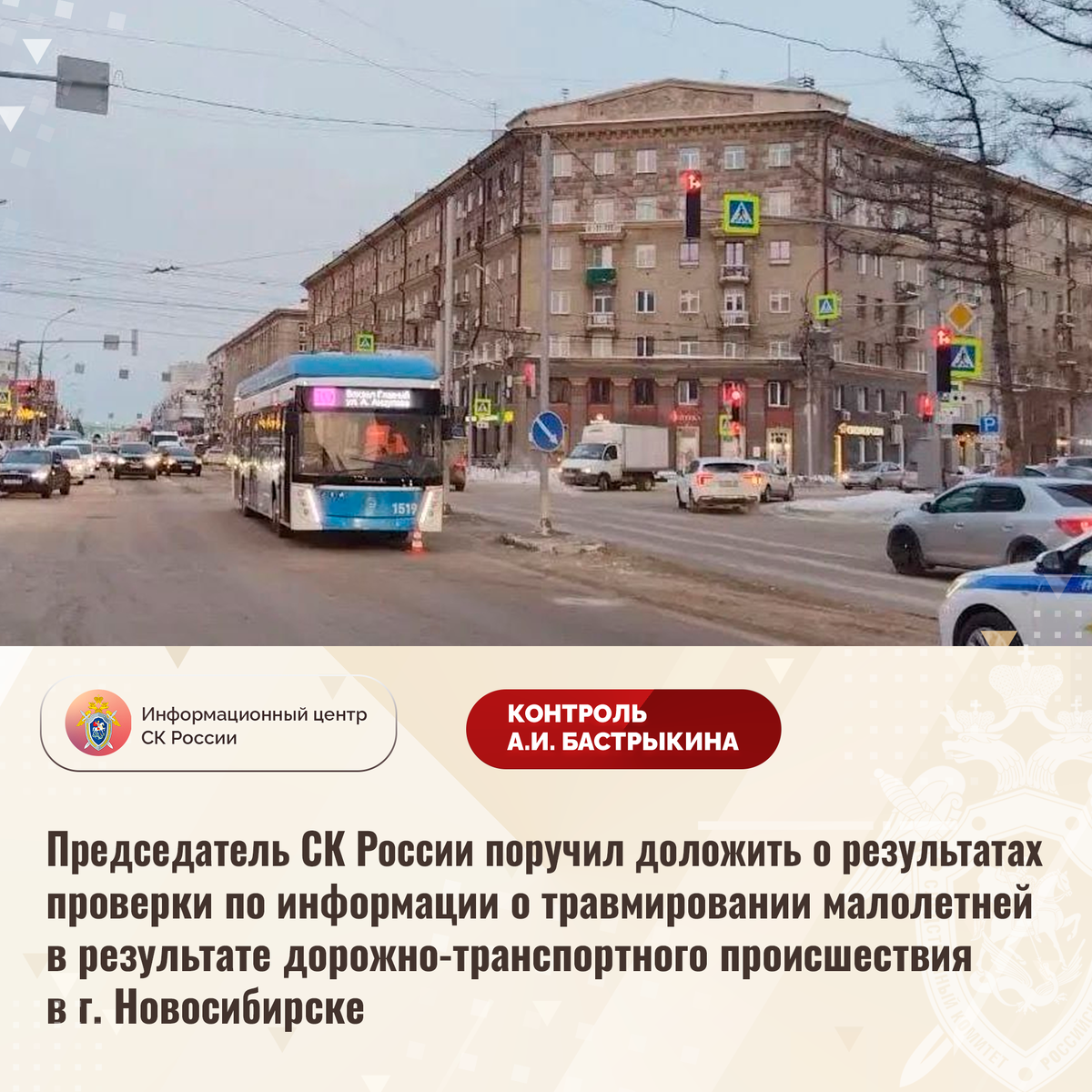 Председатель СК России поручил доложить о результатах проверки по информации о травмировании малолетней в результате дорожно-транспортного происшествия в г. Новосибирске В сети Интернет сообщается, что 12 декабря текущего года в городе Новосибирске водитель троллейбуса проехал на запрещающий сигнал светофора и совершил наезд на девятилетнюю девочку, которая переходила проезжую часть в зоне регулируемого пешеходного перехода. В результате пострадавшую с полученными повреждениями доставили в медицинское учреждение. В СУ СК России по Новосибирской области по данному факту организована процессуальная проверка. Председатель Следственного комитета Российской Федерации Александр Иванович Бастрыкин поручил руководителю СУ СК России по Новосибирской области Евгению Геннадьевичу Долгалеву доложить о промежуточных результатах процессуальной проверки и принятом по итогам решении. Исполнение поручения, а также ход процессуальной проверки поставлены на контроль в центральном аппарате ведомства. #С