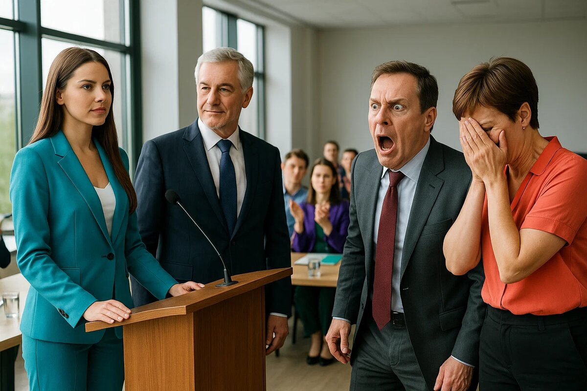 Утро было солнечным. Я приехала за полчаса, поднялась в конференц-зал. Управляющие других точек, бухгалтеры, завхозы. Олег Сергеевич у окна, уверенный, довольный. Евгения в первом ряду смотрела на меня с презрением: