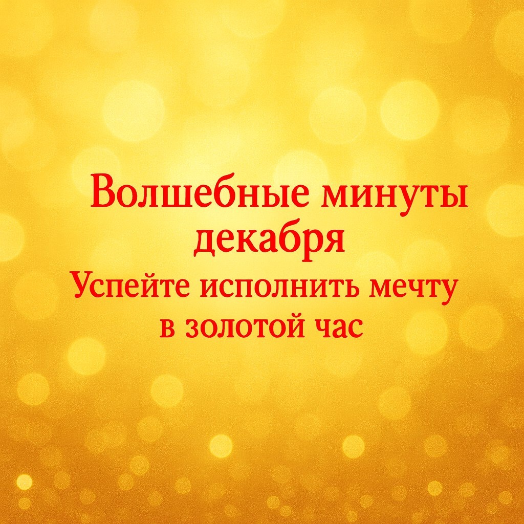 Запомните: золотой час каждого декабря отличается по-настоящему особой энергией. В эти минуты пространство открыто для каждого, кто ищет счастья, кто живёт с верой в лучшее, кто готов не только брать, но и дарить. Поблагодарите Вселенную за всё, что уже есть в вашей жизни — эта благодарность усилит ваше намерение и ускорит исполнение желаемого.