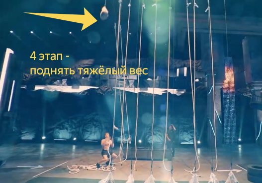 Мешки с камнями тяжелее было для Никиты. 40 кг там кажется? Последний самый тяжёлый взял. Устал очень. решается разгрузить руки пока будет делать баланс. Это уже пятый этап.