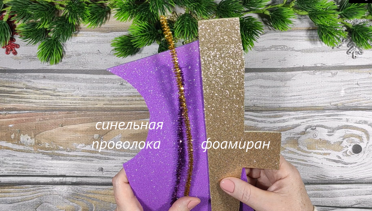 Добрый день)))😊 Сегодня невероятно простая и очень экономичная ёлочная игрушка, но тем не менее всё-равно красивая. Я очень люблю ёлочные игрушки в виде разных сосулек. Давно, ещё на Ютубе, выкладывала мои самые популярные сосульки из 4х полос. Сегодня ещё проще - всего две узенькие полосочки фоамирана и две синельные проволочки, без всяких бамбуковых палочек. Фоамиран я использовала глиттерный, один из них (сиреневый) с самоклеющейся стороной, но это не обязательно. Можно просто склеивать две стороны клеевым пистолетом. Можно ещё на одну полосочку фоамирана приклеить двусторонний скотч, а затем уже склеить с другой полоской фома. В некоторых сосульках я использовала для одной стороны глиттерный фоамиран, а для другой- простой, не блестящий (только сосулька будет потоньше). Синельную проволоку использовала блестящую, с обычной плюшевой получается немного не тот вид. Проволоку подбирала приблизительно по цвету фома: красный фом - красная блестящая проволока, белый - серебро или про