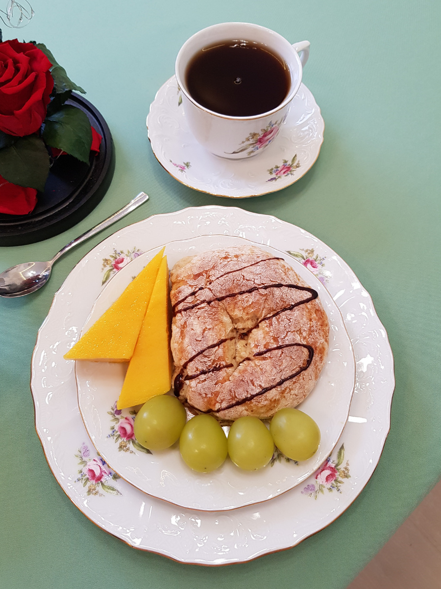Добрый день, дорогие друзья! Сегодня я предлагаю вашему вниманию пышные творожные пышки, которые украсят завтрак или полуденный чай, наполнят своим ароматом дом и создадут ощущение уюта. Для приготовления 9 порций нам понадобятся: 450 грамм творога, 180 грамм сахара, 330 грамм муки, 2 яйца, 1 чайная ложка соды и 50 грамм муки дополнительно для панировки. Для оформления 9 порций нам понадобятся: 500 грамм манго, 600 грамм мускатного винограда, 10 грамм шоколада. Приготовление: творог, сахар и яйца поместить в ёмкость. Измельчить до однородности блендером. Просеять муку, добавить соду. Вымесить тесто. Мокрыми руками сформировать бублики, обвалять их в муке и поместить на противень, застеленный пергаментом. Выпекать при температуре 180 градусов Цельсия 30 минут на режиме нижний и верхний нагрев. Готовые пышки разложить по тарелкам, полить расплавленным шоколадом. Дополнить мускатным виноградом и кусочками манго. Приятного аппетита!