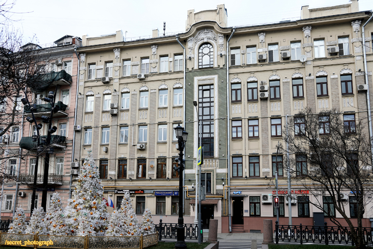 Несколько своих ближайших историй я посвящу Рождественскому бульвару, где что ни дом, то сокровище и памятник архитектуры. Когда слышишь слова «Доходный дом Силуанова», сразу вспоминается архитектурная доминанта Лялина переулка в стиле модерн со знаменитой «Булошной», в 1901-1902 годах выстроенная Павлом Александровичем Заруцким. Но есть еще один пятиэтажный доходник работы того же зодчего, также возведенный для московского купца и строительного подрядчика Николая Ивановича Силуанова двумя годами позднее, в 1904 году. Участок на Бульварном кольце Николай Иванович приобрел гораздо раньше, еще в 1880-е годы, и выстроил на нем более скромный доходный дом, пока еще всего в три этажа. Его автором был архитектор Петр Александрович Виноградов, создатель Епархиального дома в Лиховом переулке и храма Всемилостивого Спаса Скорбященского женского монастыря. Но время шло, росло население Москвы и, как следствие, спрос на жилье. И… …Домовладелец решил увеличить недвижимость Правда, и новое решени
