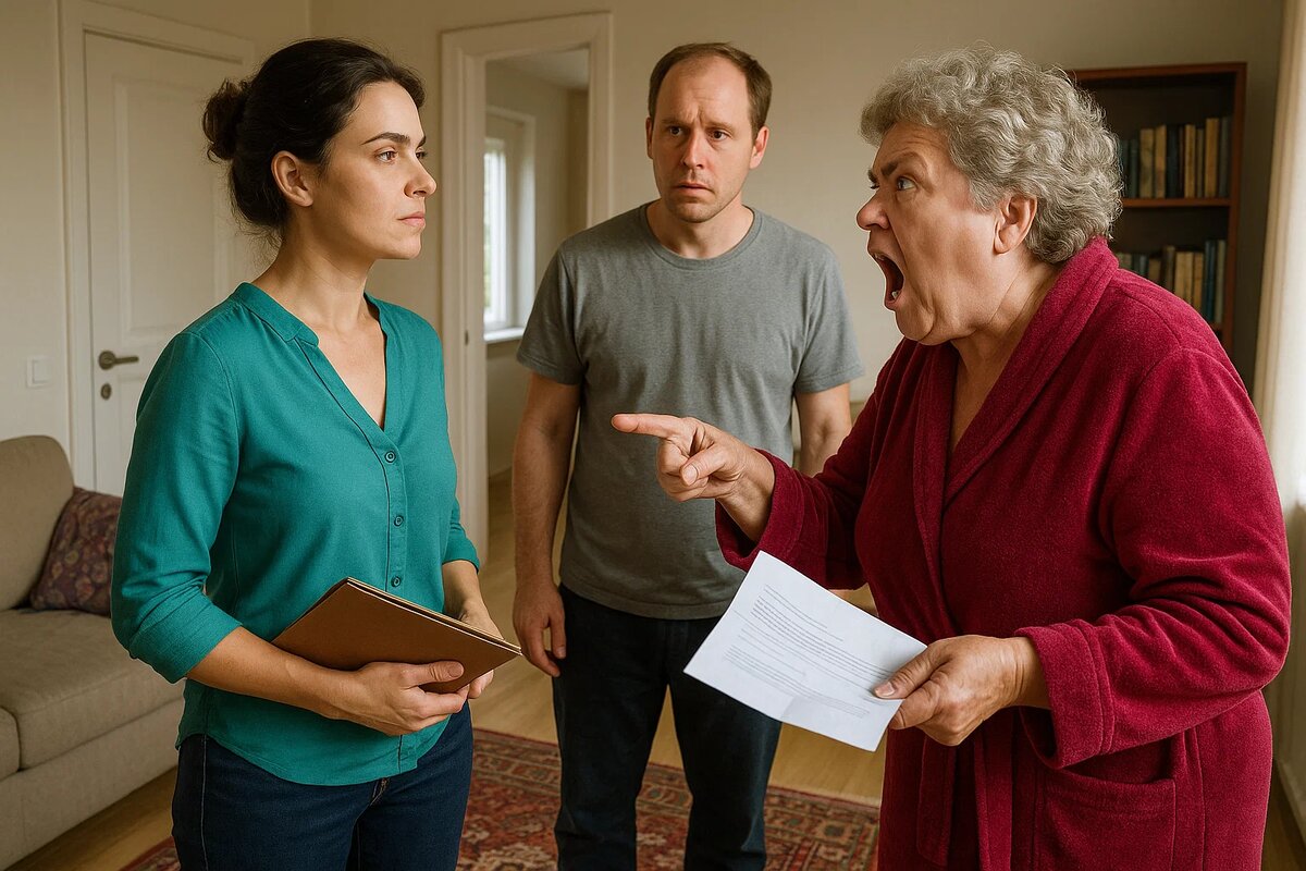 «Вот это что? Нашла у тебя в сумке, когда ты убежала вчера! Из Франции, от нотариуса! Наследство, ферма, счёт! Ты что, думала, мы не узнаем? Сколько там? Сколько ты от нас скрывала?»