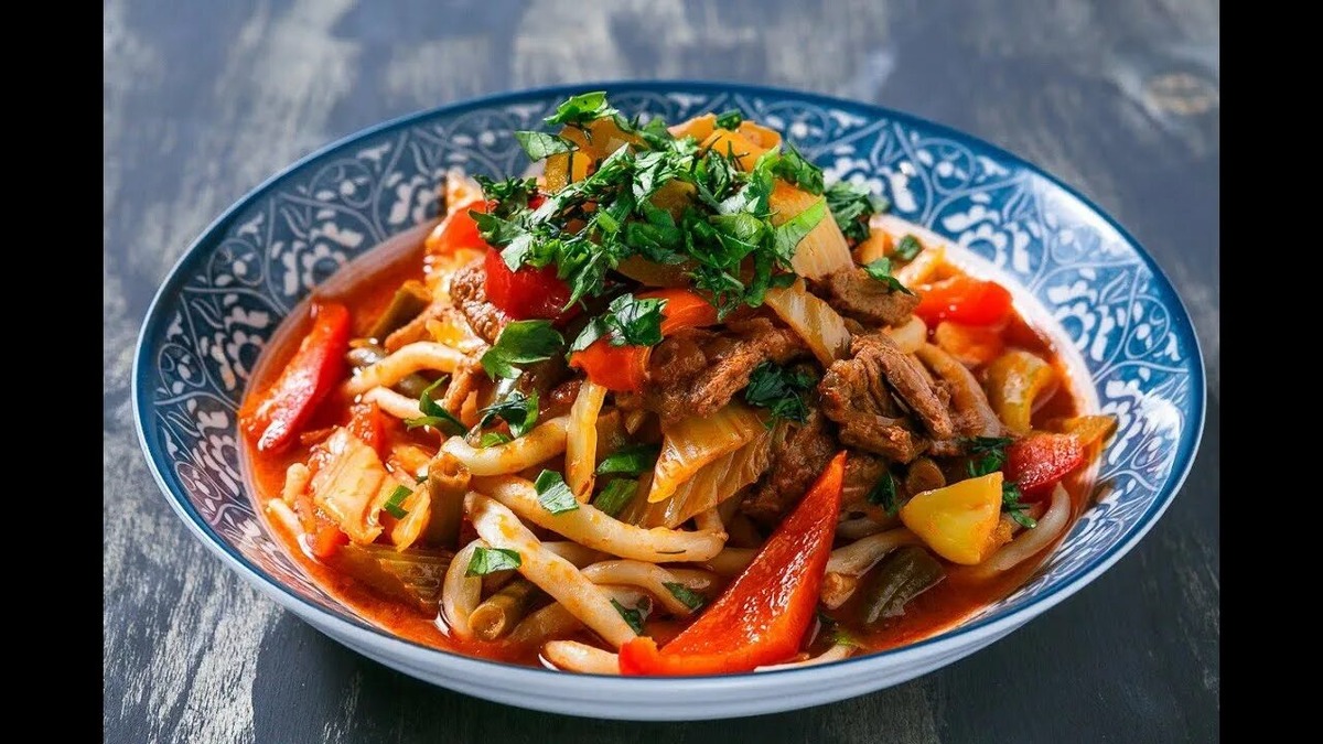 Ароматный,сытный и невероятно вкусный лагман — это не просто суп, а настоящее кулинарное путешествие по Средней Азии. Наваристый мясной бульон, длинная лапша ручной работы (чузма) и яркая овощная поджарка (ваджу) — в этом блюде гармонично слились традиции и вкус. Наш рецепт покажет, как приготовить классический лагман с говядиной в домашних условиях. Это потребует времени, но результат — богатый, насыщенный и самобытный вкус — того стоит!