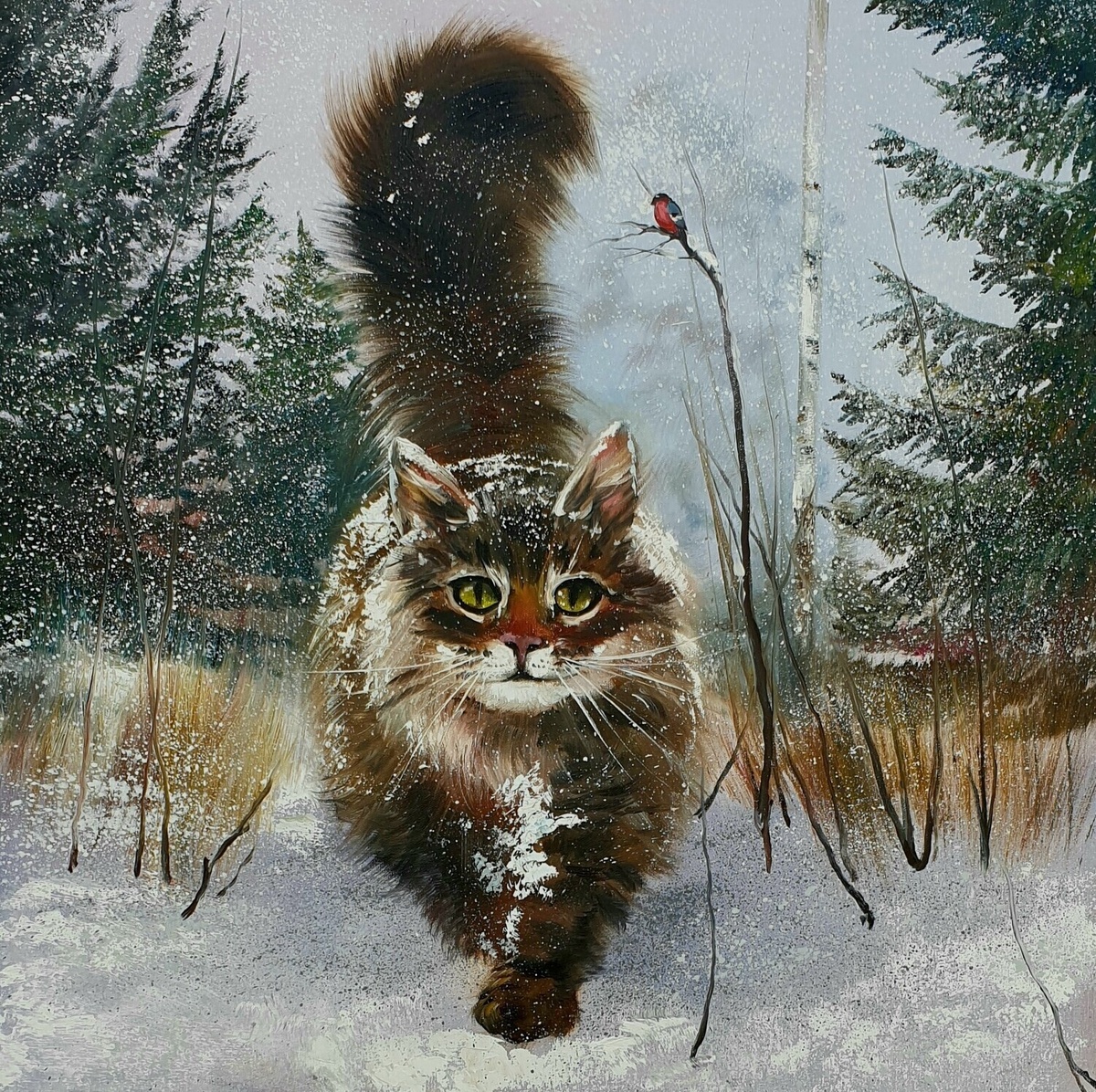 Декабрь открыл свой снежный вернисаж... Ах, как чудесны зимние сюжеты! Седой Зимы он воссоздал пейзаж, Посеребрив палитру красок щедро!.. * Люблю нетопкий первозданный снег, Слегка хрустящий под пушистой лапой! Мне по душе декабрьский робкий свет, Похожий на мерцанье старой лампы... * Чуть просветлев, темнеет небосвод... И белый день, как долгий синий вечер. Декабрь... к чертогу света поворот! И с Новым годом радостная встреча! * Люблю смотреть на серебристый снег, На гордый стан вечнозелёных елей... * Декабрь... в грядущий год разбег! И пробный старт в начало мирной эры! * Кот & Natali * Удачной недели вам, друзья! 🤍🎄❄🎀🌟☃️🎁