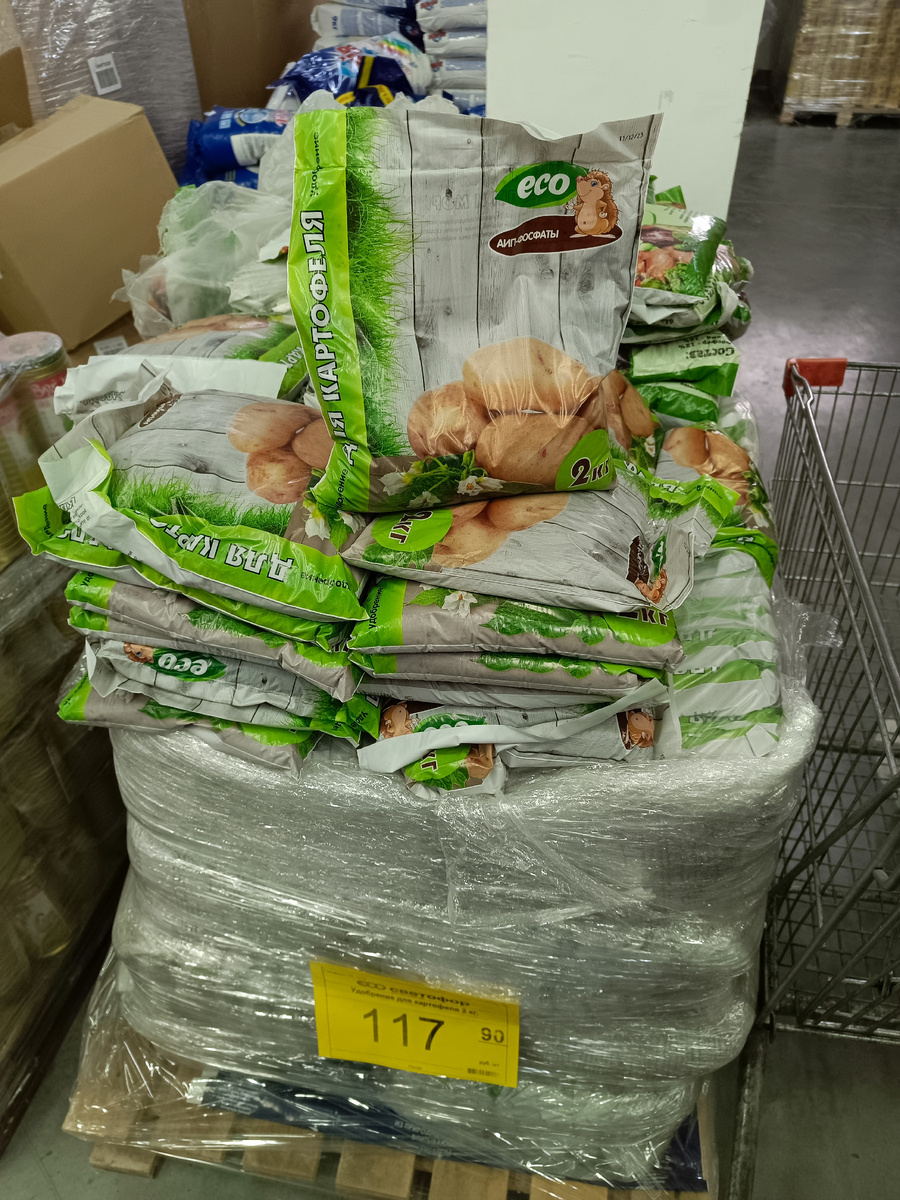 - Для сада и огорода: Удобрение для картофеля – 118 рублей. Универсальное удобрение – 110 рублей. Саженцы роз – 176 рублей.