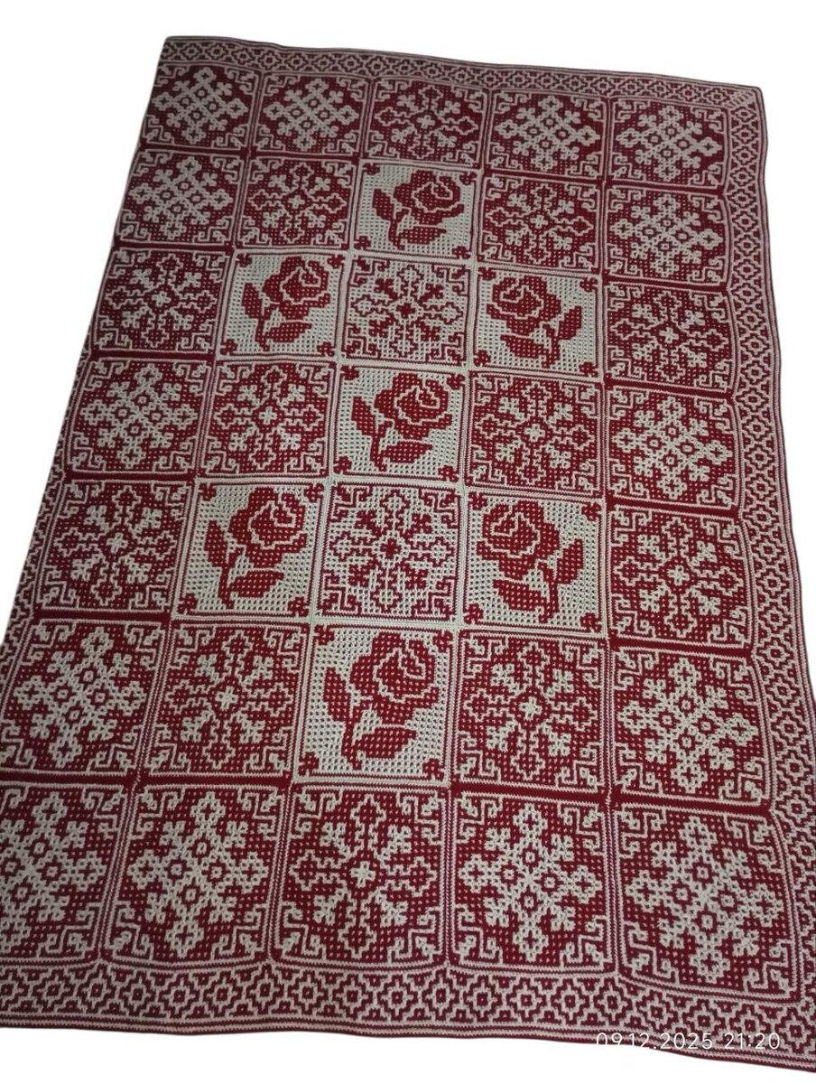 Плед из мотивов. Новости наших чатов Майя выбрала для своего пледа мотив из чата «Квадрат в день», связав его инверсией в разных вариантах, а также мотив малой розы из чата «Роза в квадрате». Обратите внимание на раскладку мотивов и работу с бордюром🔥 Майя: «Пряжа 100% акрил 300 м. В 100 граммах. Точно сколько мотков ушло не скажу, это мои первые шаги в мозаике. Вес 1488 гр. Крючок номер 3». Чат и схемы «Квадрат в день»: https://t.me/kvadratgendina Роза в квадрате: чат и схема https://t.me/rozagendina