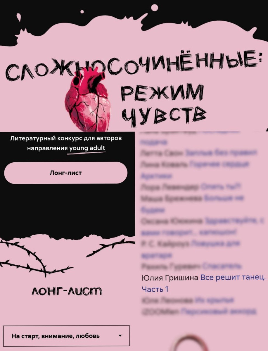 Моя книга "Все решит танец" попала в лонг-лист "Сложносочиненных чувств