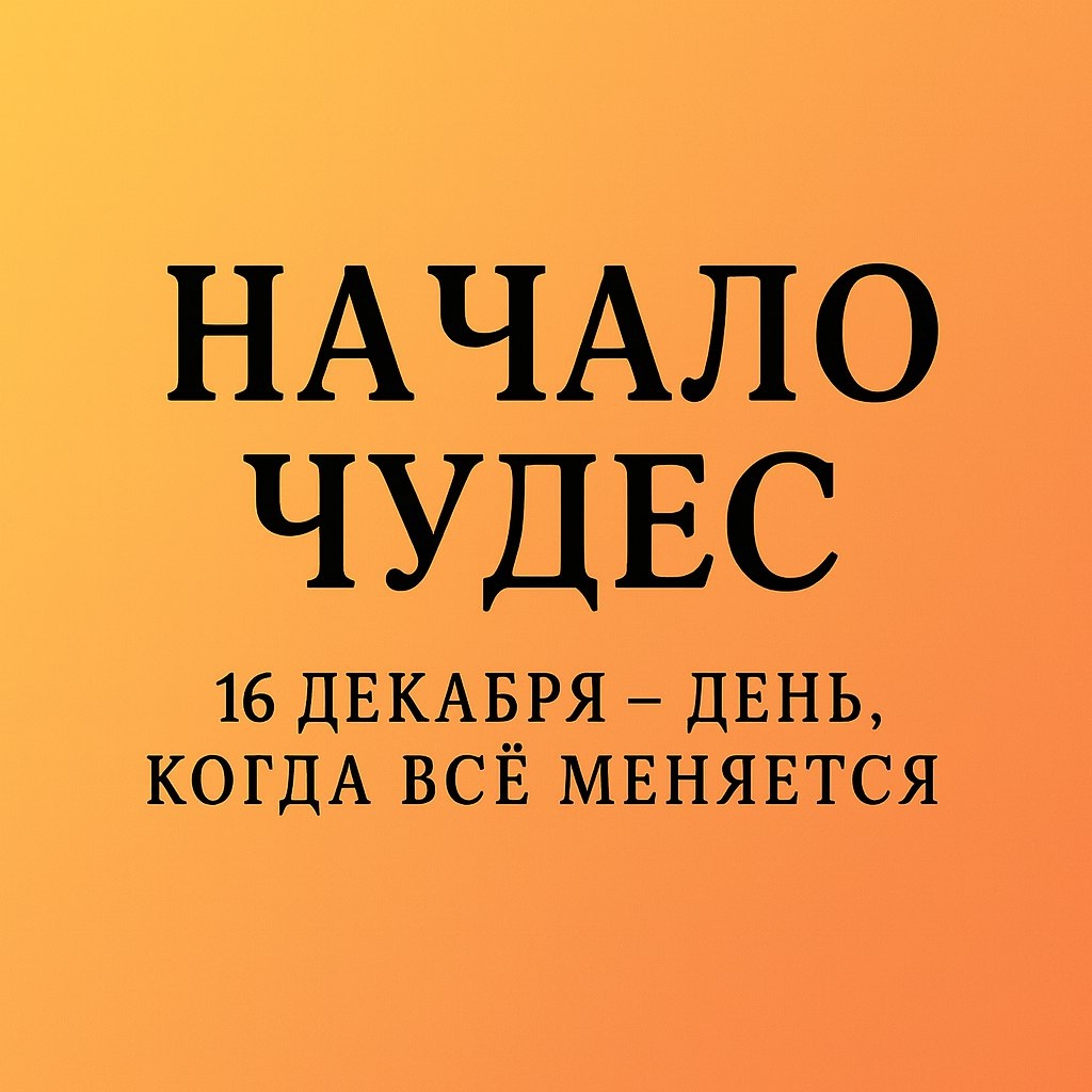 Декабрь издавна считался временем глубокой, зрелой тишины, когда Душа становится прозрачной и слышит малейший намёк судьбы. В этот месяц самые сильные и старые желания дозревают, чтобы прорасти сквозь любой лёд. 16 число особенное: в этот день весь поток пробуждаются спящие возможности. Если вы долго ждали события, просили о любви, новой работе, выздоровлении, укреплении отношений — именно сегодня стоит вновь обратиться к своему сердцу.