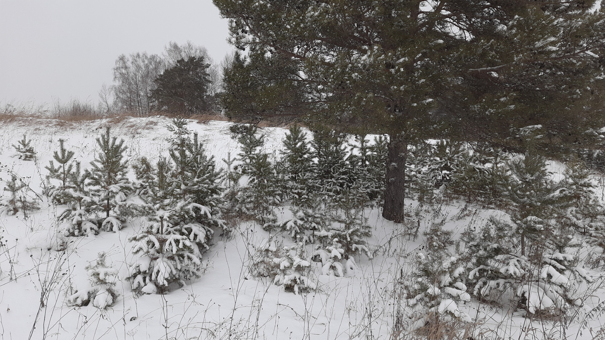Маленькие молоденькие деревца запорошило снегом. Такой ровный ряд молодых сосен. Такие пушистые белые шапки укрыли деревья. Декабрь 2025 г. #зима 📸 место съёмки: Ачинский район Красноярский край