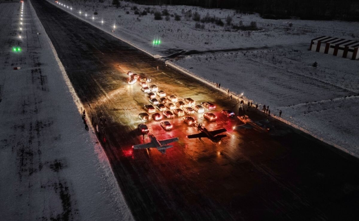 На калужском аэродроме зажгли ёлку из самолётов и машин