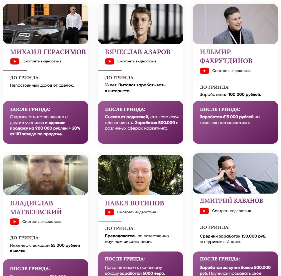 Grind University 3.0: 6 типов учеников, которые меняют свою карьеру Когда речь заходит о курсах по маркетингу и digital-профессиям, часто возникает вопрос: «А подойдёт ли это именно мне?». История проекта Grind University 3.0 интересна тем, что его выбирают абсолютно разные люди — от школьников до опытных предпринимателей. Давайте посмотрим, какие запросы приводят людей к этому обучению и каких результатов они достигают. 1. Молодые люди, начинающие с нуля Кейс: Роман, 16 лет Ситуация: Желание начать зарабатывать без опыта и формального образования. Решение: Практические модули по основам привлечения клиентов. Результат: 60 000 ₽ за первые проекты в строительной нише. 2. Студенты, стремящиеся к самостоятельности Кейс: Игорь, 18 лет, студент колледжа Ситуация: Необходимость совмещать учёбу с доходом. Решение: Изучение платформ для фриланса и основ личного брендинга. Результат: 120 000 ₽, заработанные во время учебного семестра. 3. Специалисты, ищущие карьерных изменений Кейс: Илья, быв