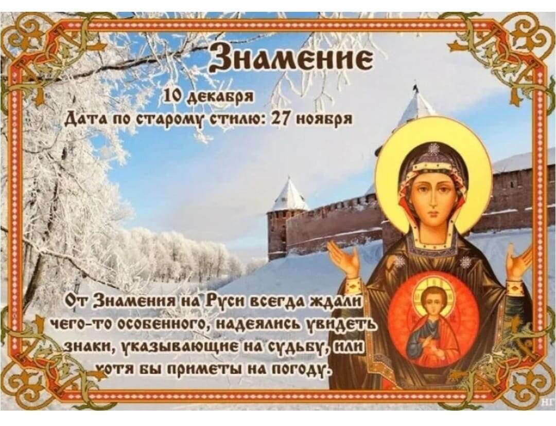 Здравствуйте, уважаемые читатели! Иконы Божией Матери, известные под именем "Знамение", появились на Руси в XI - XII веках, а называться так стали после чудесного знамения от Новгородской иконы, случившегося в 1170 году. Войска Мстислава Андреевича, второго сына Великого князя Владимирского Андрея Юрьевича Боголюбского, подошли под стены Великого Новгорода. Новгородцам оставалось уповать лишь на Божию помощь. Дни и ночи молились они, умоляя Господа не оставлять их. На третью ночь услышал архиепископ Новгородский Иоанн дивный голос, повелевающий ему взять из Церкви Спаса Преображения на Ильиной улице образ Пресвятой Богородицы и вынести его на городскую стену. Когда икону переносили, - враги пустили в крестный ход тучу стрел, и одна из них *вонзилась в иконописный лик Богородицы.* Из глаз Её истекли слезы, и икона повернулась ликом к городу. *После такого Божественного знамения* на врагов внезапно напал неизъяснимый ужас, они стали побивать друг друга, а ободренные Гос