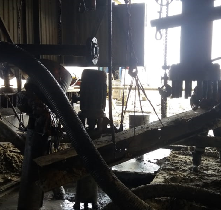 - Работы проводятся в непосредственной близости от подвешенного оборудования (противовыбросовое оборудование, разъемный желоб, выкидная линия), что создает постоянную угрозу.