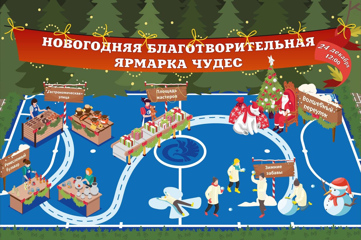 🎄Новогодняя Благотворительная Ярмарка Чудес! 🎅 Друзья, приглашаем вас в волшебное путешествие по самому доброму празднику года! У нас будет не просто ярмарка, а целый город мастеров и волшебников. 💡 Дата и время : 24 декабря 12:00 💙 Место проведения : Спортивный зал Карта нашего Волшебного города: Вся ярмарка — это 5 больших локации, переходя от одной к другой, вы сможете творить, пробовать, играть. 🍪 ГАСТРОНОМИЧЕСКАЯ УЛИЦА Тут пахнет мандаринами, имбирным печеньем и горячим чаем! 🧤 РЕМЕСЛЕННЫЙ БУЛЬВАР Здесь живут мастера, которые дружат с кисточками, бисером, деревом и нитками! 🏡 ПЛОЩАДЬ МАСТЕРОВ Мастер-классы по созданию новогодних украшений, игрушек, открыток и других изделий. 🎇ВОЛШЕБНЫЙ ПЕРЕУЛОК Предсказания на Новый год, лотерея, праздничные фото, живая музыка. ☺ ЗИМНИЕ ЗАБАВЫ Самая активная и веселая станция здесь. Веселые старты для всей семьи. 🎄 А как же здесь всё купить? На нашей ярмарке ходят не обычные рубли, а особенные новогодние волшебные деньги — КВАНТы