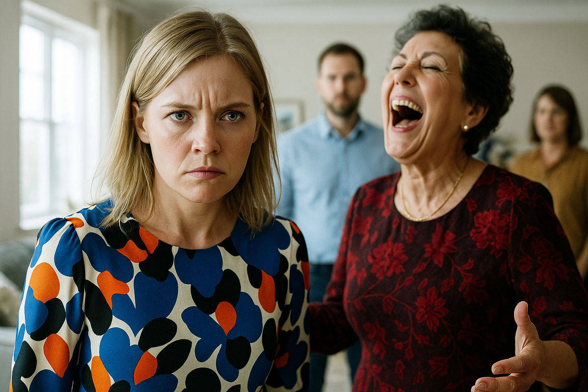 За столом царила напряжённая неловкая тишина. Гости смущённо переглядывались между собой, не зная, куда деть глаза. Ситуация была дикая. Хозяйка дома стоит в дверях, а свекровь публично её оскорбляет.