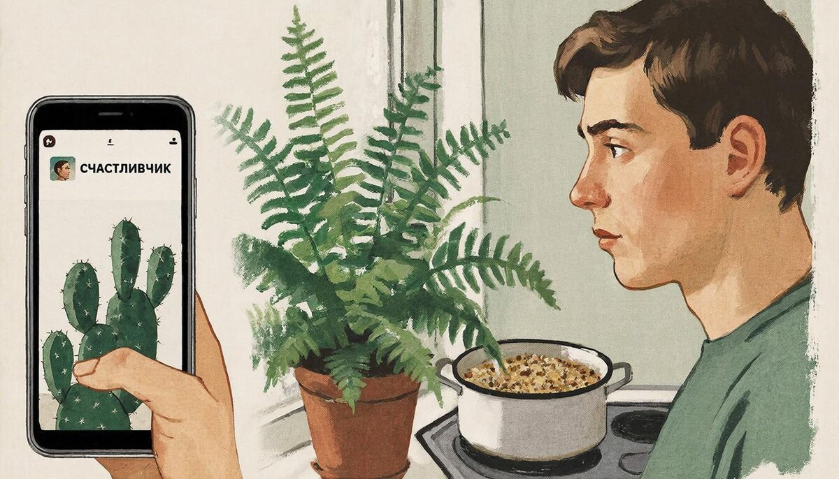 Служил он в отделе цифровизации, а в душе был романтиком и мечтателем. Однажды, листая ленту соцсетей, он наткнулся на рекламу: «Приложение „Счастливчик“! Научный алгоритм найдёт вам идеальную вторую половинку! Гарантия — 99,9%!» Аркадий Петрович, человек доверчивый и уже десять лет безуспешно искавший себе жену, тут же скачал приложение. Заполнил анкету: «Люблю тишину, папоротники и гречневую кашу. Не переношу громких звуков и людей, которые жуют с открытым ртом».