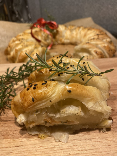 экспериментирую. Понравилась идея рождественского венка из слоеного