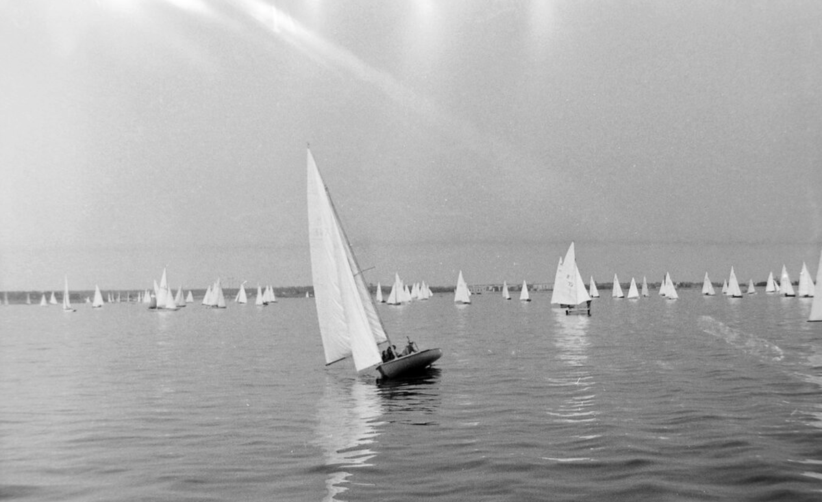 Фото сделано в 1969 году во время парусной регаты на швертботах «каравелла» (популярное в то время яхта). Сложно представить, но у многих первые парусные воспоминания связаны именно с такими лодками и этими берегами. Дух свободы и романтика тогда были точно такими же, как и сейчас. Меняются суда, технологии, но не меняется страсть к парусу!