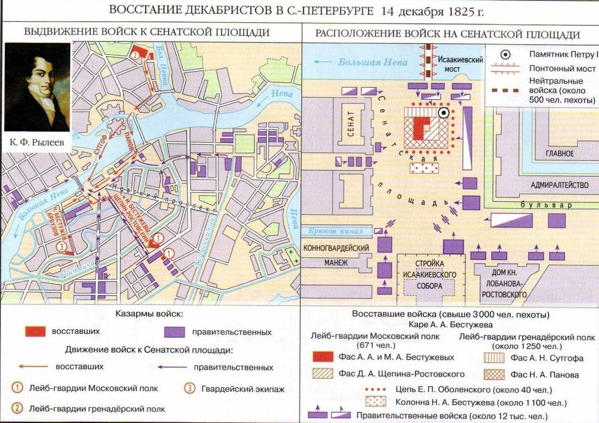 ✅✅✅Схемы расположения и выдвижения войск во время восстания декабристов на Сенатской площади