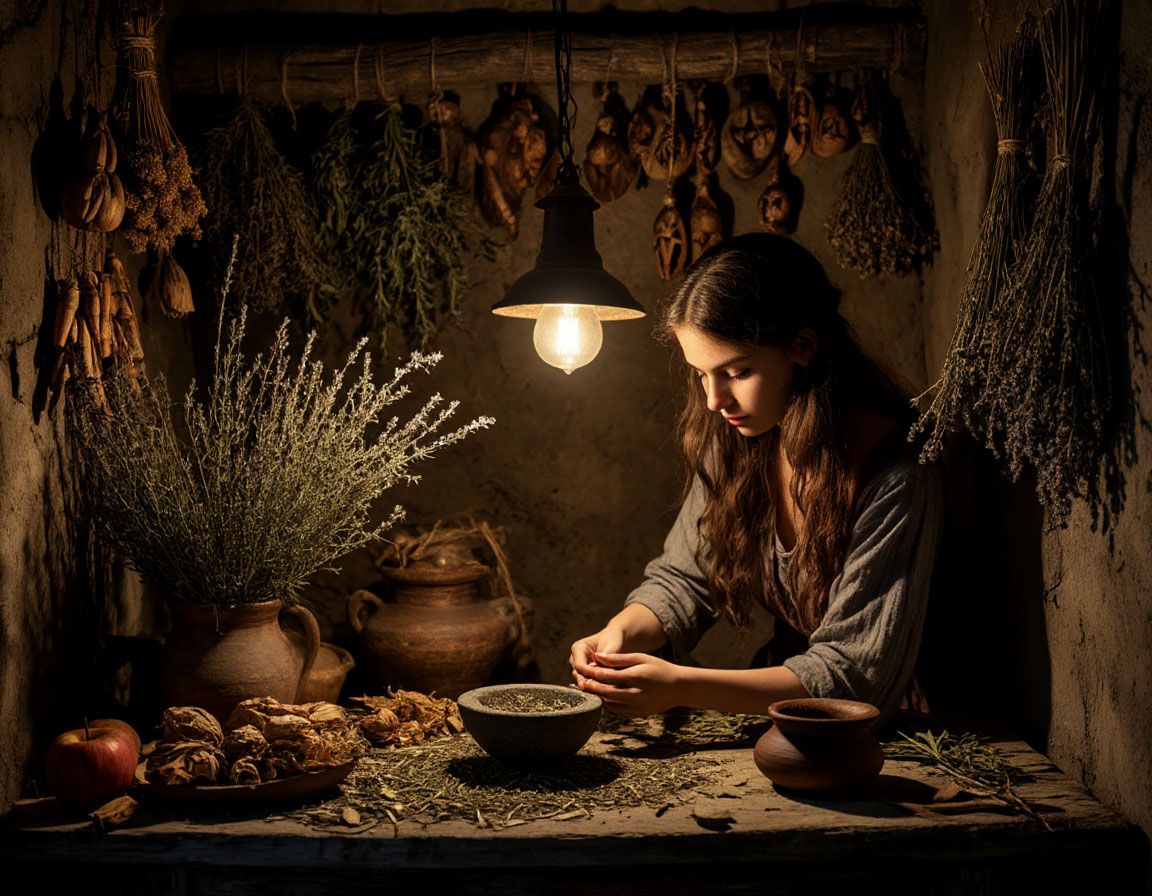 Тусклый свет ночника в доме Ясмины отбрасывал дрожащие тени на стены, увешанные связками засушенных трав и почерневшими от времени деревянными оберегами. Воздух был густым и сладковатым, пах полынью, сушеным яблоком и чем-то еще, глубоко земляным, — корнем мандрагоры, который молодая женщина как раз натирала в ступке. Ее движения были точными и выверенными, отточенными годами практики. Ясмина была не просто увлеченной эзотерикой; она была потомственной ведуньей, наследницей знания, что тянулось сквозь поколения ее материнской линии.