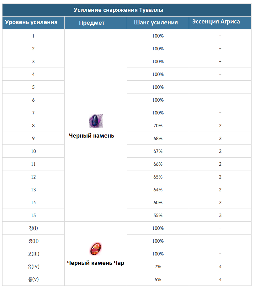 Таблица усиления Туваллы черным камнем и Черным камнем Чар в новости.