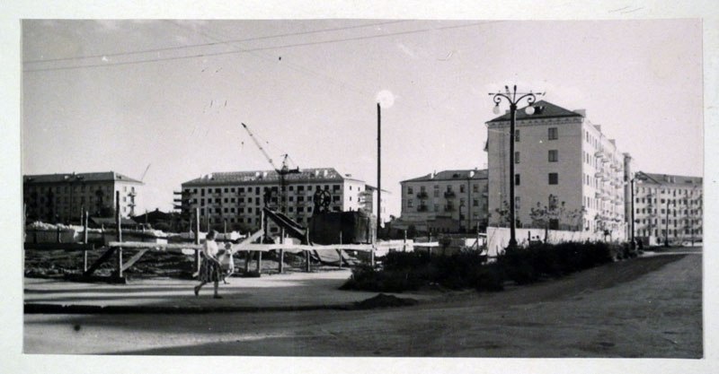 Фото. г. Курган. Строительство новых пятиэтажных домов на площадке, расположенной на углу улиц К. Мяготина и Кирова. | 1961 г.