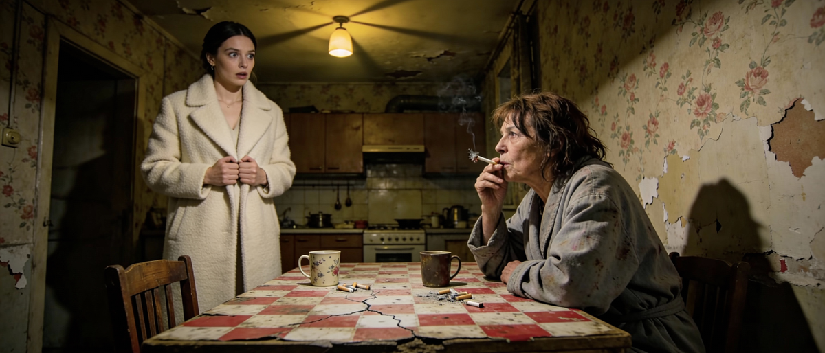 На кухне было не лучше. Липкая клеенка на столе, полная пепельница окурков. Алина села на край табурета, боясь прислониться к стене. Все её романтические представления о встрече рассыпались в прах. Не было слез, не было объятий, не было слов раскаяния.