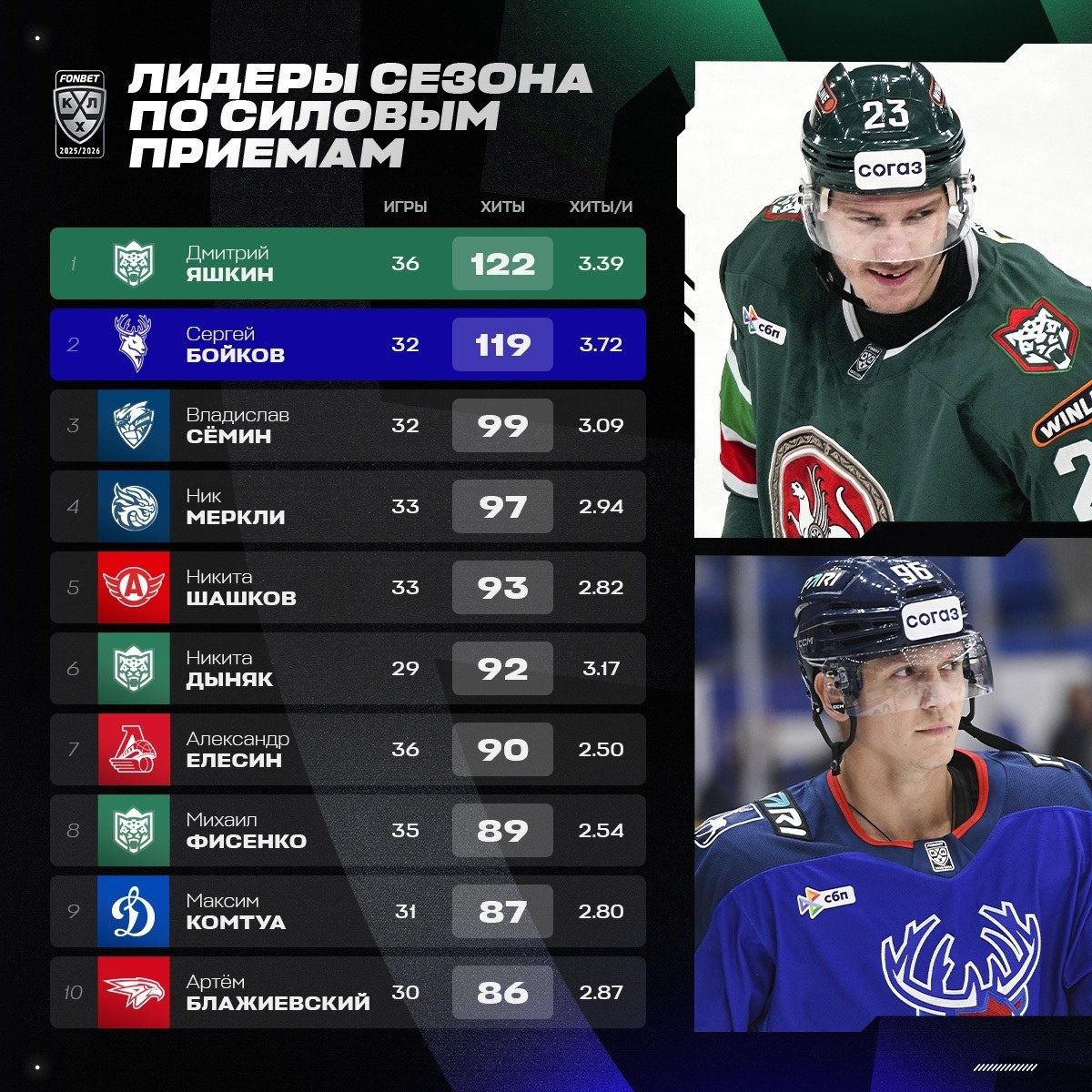 В первой части сезона два хоккеиста перешагнули отметку в 100 хитов. #хоккей #спорт
