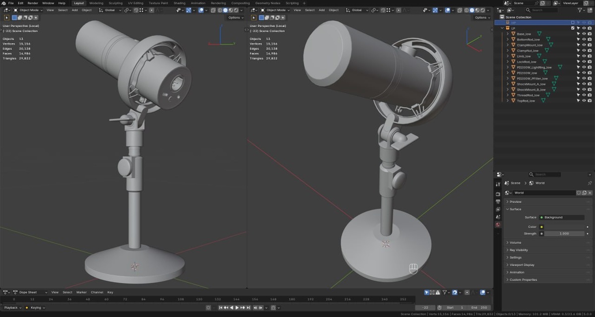 В выходные практически отдыхал, но микрофон для проекта Streamer Battle Station почти готов! 🎙 ✅ High Poly — готов ✅ Low Poly — готов ✅ UV развертка — готова На очереди запекание и текстурирование. Никак не мог настроиться сесть и записать продолжение по кронштейну для монитора. Не мог поймать нужный вайб :) Завтра планируется традиционный недельный отчёт по доходам на стоках. #Blender #3DModeling #Microphone #StreamerBattleStation #HighPoly #LowPoly #GameReady #HardSurface #Процесс