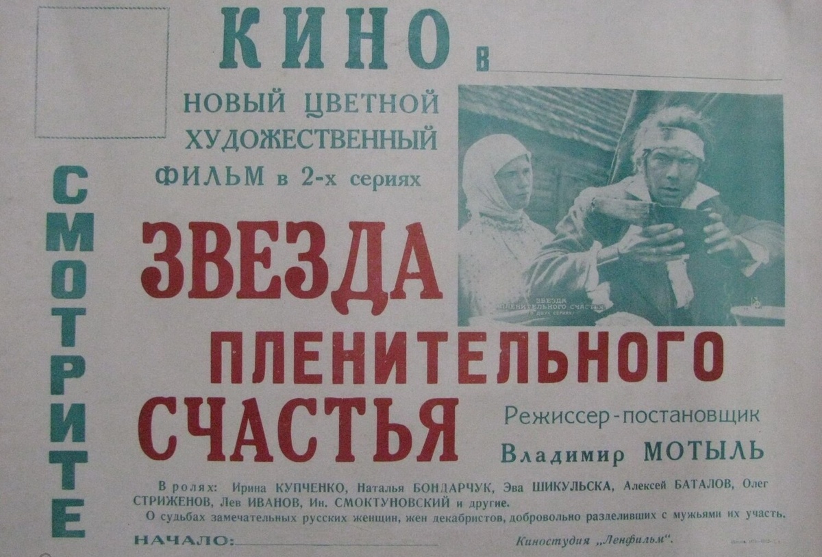 В Иркутск прилетели Олег Стриженов (Сергей Волконский), Наталья Бондарчук (Мария Волконская), Ирина Купченко (Екатерина Трубецкая), Олег Янковский (поэт Кондратий Рылеев), польская кинозвезда Эва Шикульска (Полина Гёбль-Анненкова).