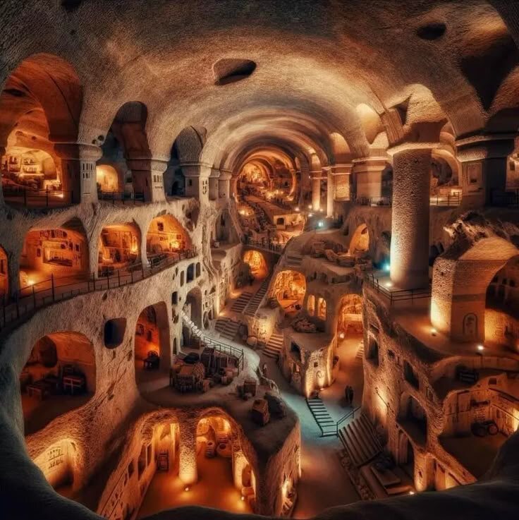 Город построен в 2 - 1 тысячелетии до н. э, обнаружен в 1963 году и спустя два года открыт для туристов. Здесь люди на протяжении веков скрывались от набегов врагов, религиозных преследований и прочих опасностей. Достигая глубины около 60 м (8 ярусов), в древние времена город мог приютить до 20 тысяч человек вместе с продовольствием и домашним скотом.