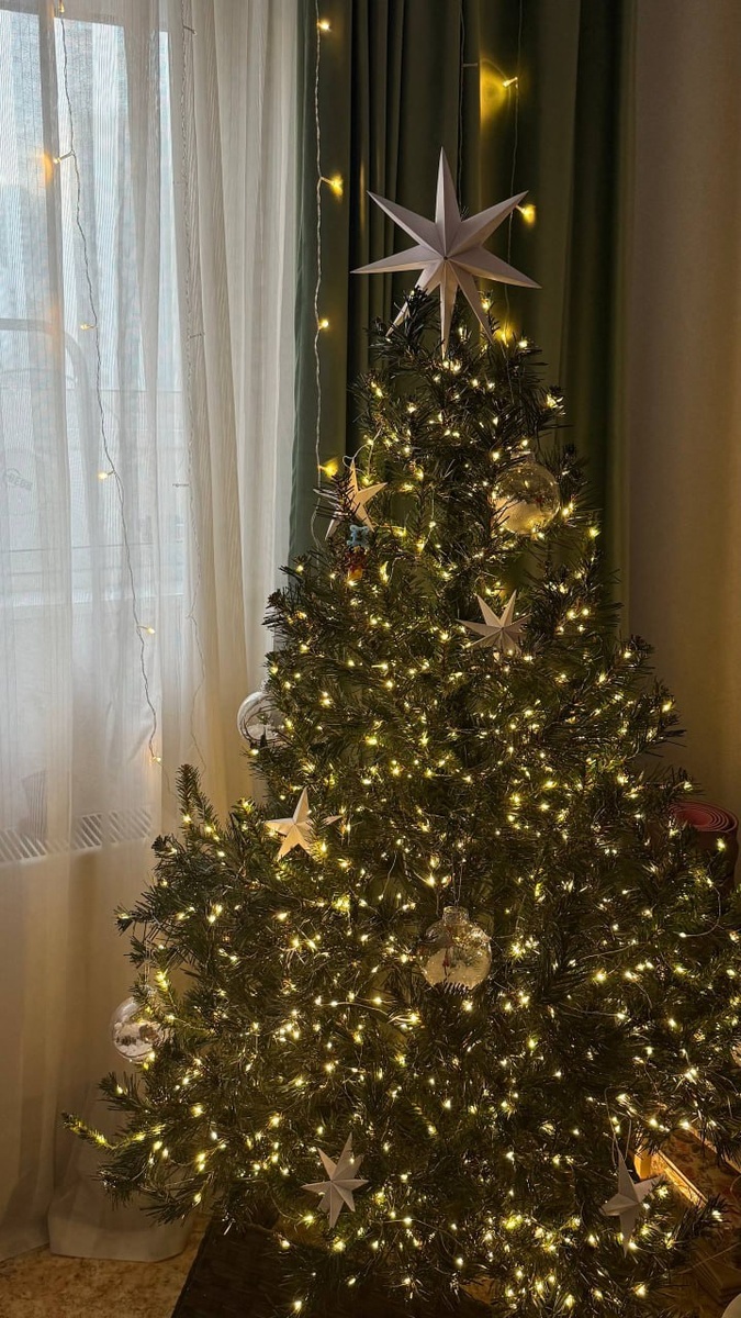 А вот как выглядит моя елочка с этими очаровательными самодельными звездами 😍🥹