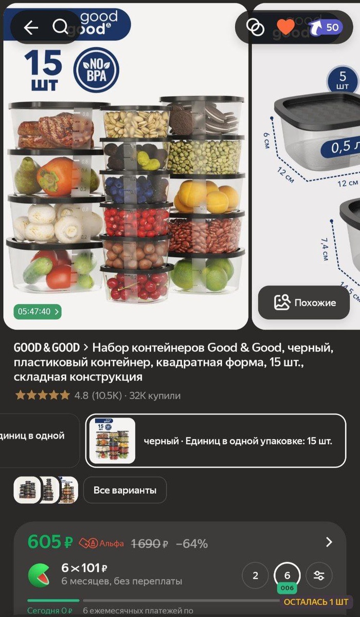 π₯ΠΠ°Π±ΠΎΡ ΠΊΠΎΠ½ΡΠ΅ΠΉΠ½Π΅ΡΠΎΠ² Good & Good, ΡΠ΅ΡΠ½ΡΠΉ, ΠΏΠ»Π°ΡΡΠΈΠΊΠΎΠ²ΡΠΉ ΠΊΠΎΠ½ΡΠ΅ΠΉΠ½Π΅Ρ, ΠΊΠ²Π°Π΄ΡΠ°ΡΠ½Π°Ρ ΡΠΎΡΠΌΠ°, 15 ΡΡ., ΡΠΊΠ»Π°Π΄Π½Π°Ρ ΠΊΠΎΠ½ΡΡΡΡΠΊΡΠΈΡ