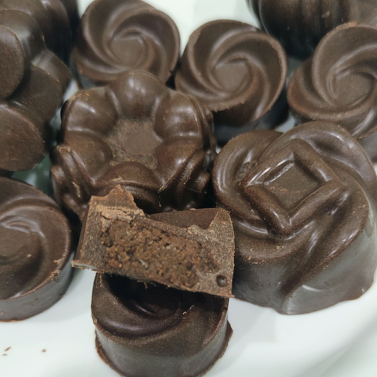 ШОКОЛАДНЫЕ ТРЮФЕЛЬНЫЕ КЕТО КОНФЕТЫ Для шоколада: Какао масло - 90 г. Какао тертое - 95 г. Молоко сухое - 50 г. Аллюлоза - 100 г. Ванилин - щепотка Трюфельная начинка: Творожный сливочный сыр - 90 г. Какао порошок - 15 г. Кофе растворимый сухой - 3 г. Эритрит - 50 г. Кокосовое масло ароматное - 30 г. Ванилин - щепотка Приготовление: Начнем с начинки. Начинка должна быть