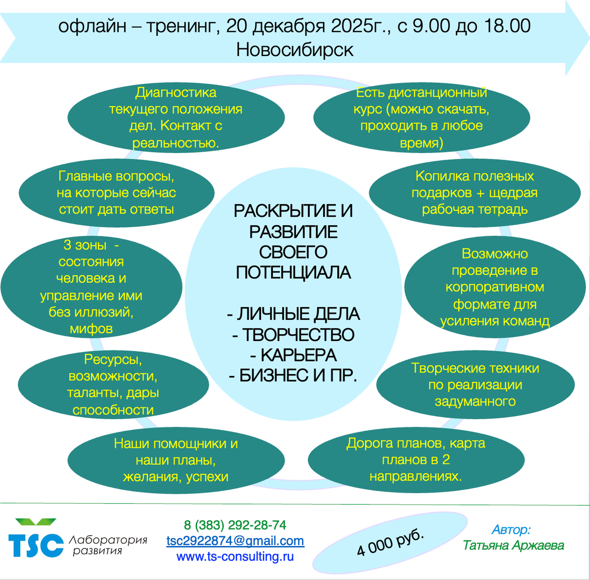 «Раскрытие и развитие своего потенциала». Программа: Последовательно, шаг за шагом, с подробными комментариями, заданиями и практикой, в удобное для вас время вы поработаете со своими –