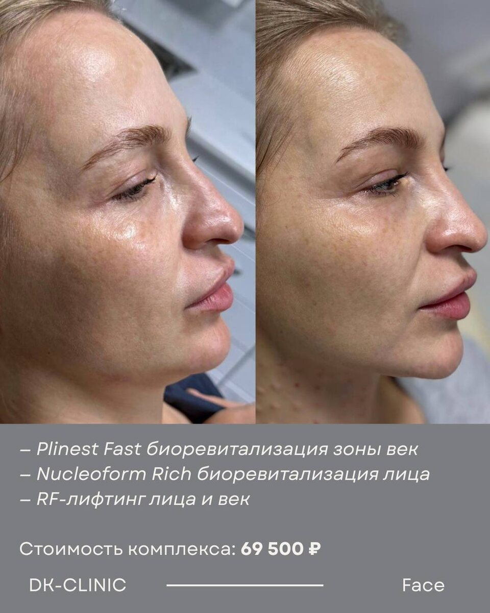 Комплексный подход к омоложению зоны век и лица — результат на фото спустя 2 месяца! ➡️ 16.10 — проведена биоревитализация: • Nucleoform Rich (лицо) • Plinest Fast (зона век) ➡️ 19.11 — выполнена процедура RF-лифтинга Scarlet S (лицо и веки) ➡️ 08.12 — сделано фото результата, которое вы видите «до/после». 🔘Улучшение качества кожи, плотности, выраженный лифтинг и свежий, отдохнувший взгляд — без радикальных вмешательств и длительной реабилитации. Все процедуры выполнены врачом-косметологом Полиной Записаться к Полине