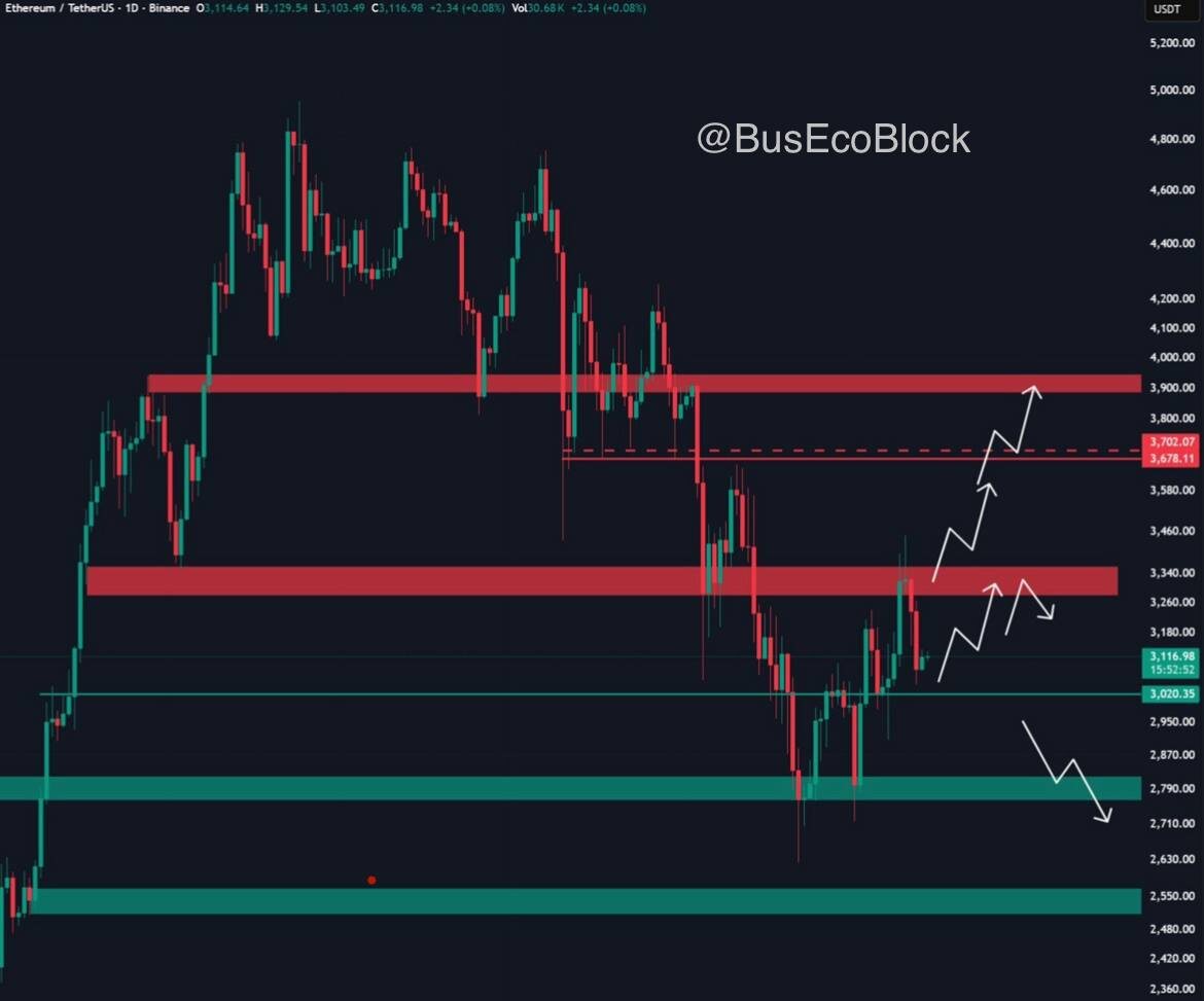 Внимание на эфир! $ETH Цена топчется на месте. Без уверенного закрепления выше $3,400 🟢 всё идёт к тесту $3,000 🔴. Это главный переломный момент — не упустите его. #альтсезон #альткоины #эфириум BusineesEconomyBlockchain l Bybit