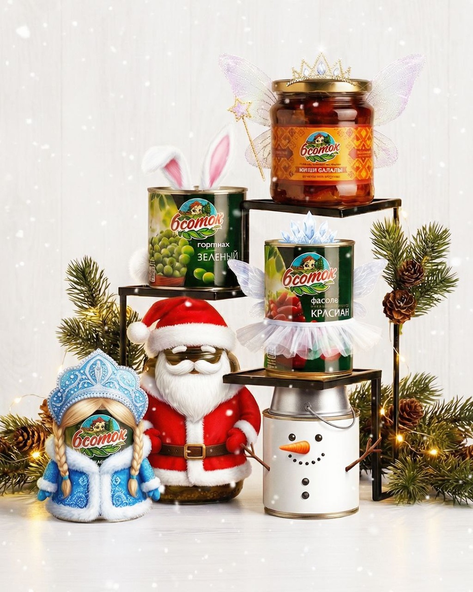 Декабрь — время, когда даже самые обычные вещи становятся немного волшебными. Вот и мы решили пофантазировать и принарядить наши баночки к главному празднику! ✨ А какой продукт «6 соток» — обязательный гость и главный герой на вашем праздничном столе?