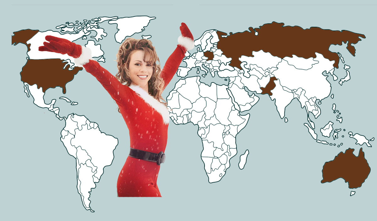 Каждый месяц собираю по три самые популярные песни из пяти стран мира, чтобы немного освежить плейлисты. В этом месяце ожидается, что почти везде топы будут очень похожими, потому что накануне зимних праздников люди слушают одну и ту же классику жанра. Проверим эту гипотезу. США Начнём с главного музыкального рынка мира и с главного источника рождественских хитов. Именно здесь из праздника сделали капиталистическое безумие, и именно отсюда вышли очень многие узнаваемые рождественские песни. Три из них заняли тройку лидеров: на третьем месте Мэрайя, на втором единственный знаменитый трек Бобби Хэлмса Jingle Bell Rock, а на первом Брэнда Ли с Rockin' Around The Christmas Tree. Польша Заглянем в одну из главных католических стран в Европе. Брэнда и Бобби тут на 4 и 5 местах, Мэрайя прорвалась в тройку лидеров на втором, а на первом ещё одна классика Last Christmas от Wham! Единственная непраздничная песня в топ-10 на третьем – новый сингл местных рэперов Bedoes 2115 & Kubi Produce