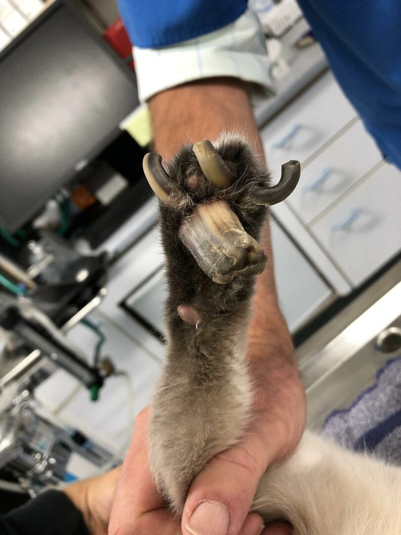Кожный рог у кошек Хозяева иногда находят на подушечках лап своих питомцев странные наросты. Из-под когтя растёт ещё один коготь. Но он не острый, даже какой-то кожистый. Это кератиновое новообразование. Само по себе оно не опасно. Но может быть симптомом одного из вирусов — папилломатоз, лейкоз. Если кожный рог не мешает при ходьбе, можно его не трогать. Если же причиняет неудобство — можно удалить (но большая вероятность, что вырастет на том же месте). И проверить питомца на скрытые вирусы! На картинках очень запущенный случай (из интернета) и легкая форма (от моих клиентов)