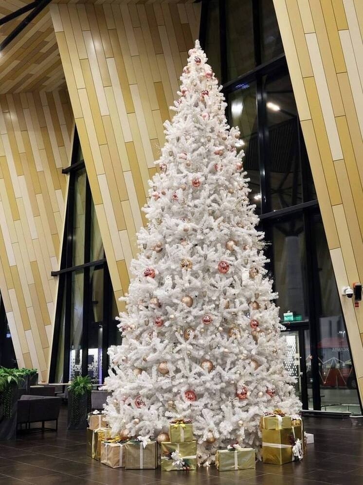 Пресс-служба аэропорта Нового Уренгоя сообщила, что центральный зал украсили праздничной иллюминацией и новогодними игрушками