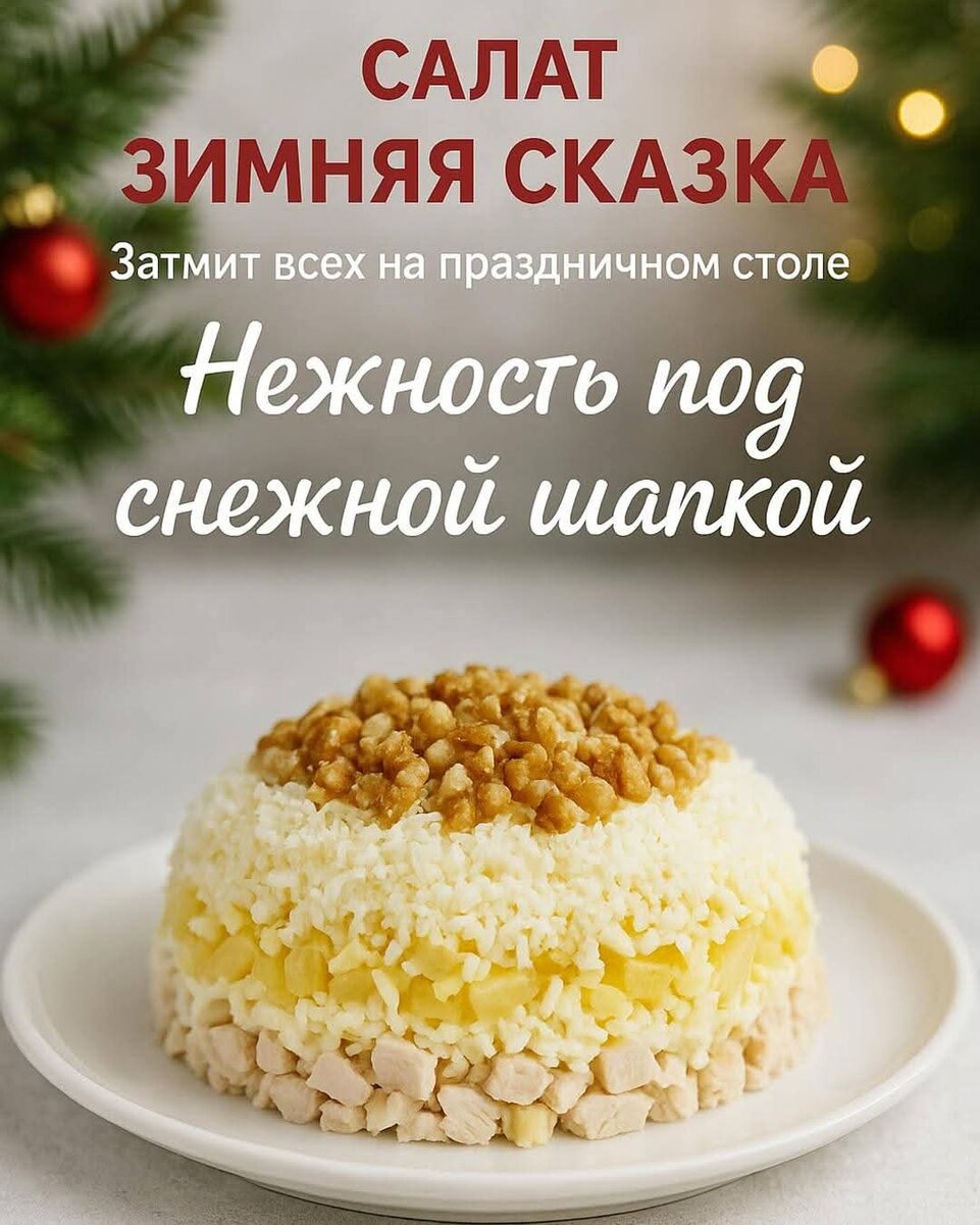 Если вы ищете эффектный салат для Нового года или любого праздника, который выглядит нарядно, готовится просто и нравится всем — «Зимняя сказка» именно то, что нужно.