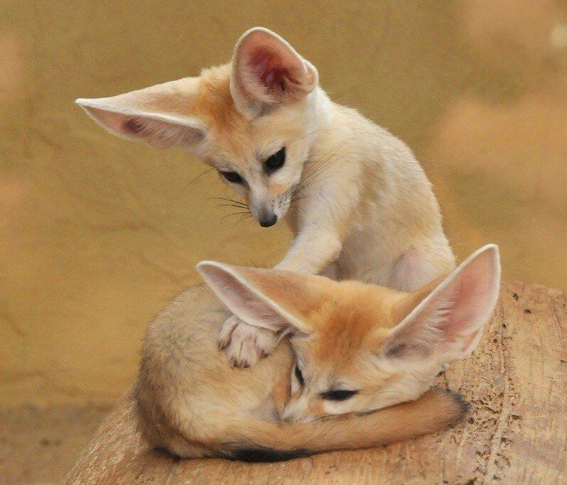 Фенек - очаровательный ушастый зверек небольшого размера, известный также как пустынная лисица. Он считается самым маленьким представителем псовых, по размеру уступает даже домашним кошкам. Вес — 1,5 кг, высота в холке — около 20 см, длина тушки — примерно 35 см, пушистый, длинный хвост, остренькая мордочка с большими глазами и огромные уши. Зубы у лисы острые и мелкие, лапки — пушистые, в том числе в районе стоп, что позволяет ей беспрепятственно бегать по горячему песку. Шерсть — длинная, мягкая и густая, рыжевато-палевая сверху, белая снизу, кончик хвоста темный. Щенки и молодые особи практически белые. Очень большие уши (до 15 см) нужны фенеку для того, чтобы легко улавливать почти незаметные уху других животных движения своей добычи: насекомых и мелких беспозвоночных. Благодаря большим ушам зверек лучше справляется с высокой температурой окружающей среды. Они позволяют ему быстрее охлаждаться. Фенек живет в пустынях Северной Африки. Выкапывает сильно разветвленные норы с потайны