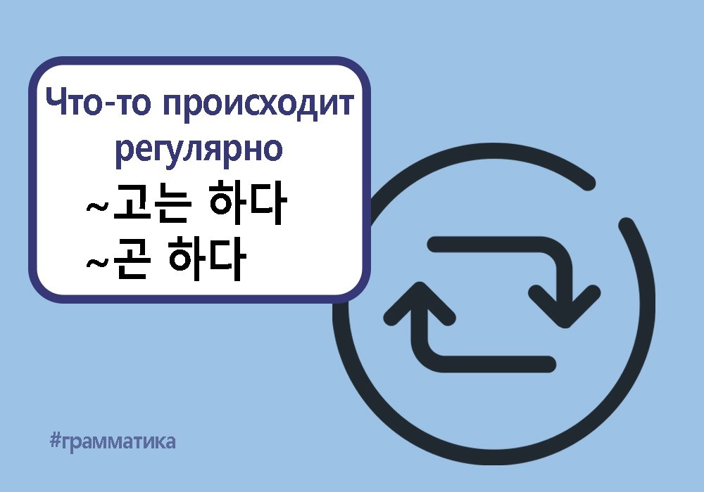 Гл.고는 하다 или Гл.곤 하다 То, что происходит регулярно. Используется для описания "привычки". 슬픈 영화를 보면 눈물을 흘리곤 한다 — Обычно, когда я смотрю грустный фильм, плачу. 건강을 위해서 주말에는 등산을 하곤 한다 — По выходным обычно хожу в горы ради здоровья. 손님을 집으로 초대할 때 불고기를 준비하곤 한다 — Когда приглашаю гостей домой, обычно готовлю пульгоги. 아버지는 나에게 젊은 시절의 이야기를 말해 주곤 했다 — Мой отец часто рассказывал мне истории из своей молодости. 친구와 의견 차이가 있을 때 친구의 입장에서 다시 생각하곤 한다 — Когда у меня разногласия с другом, я стараюсь посмотреть с его точки зрения. 한국에서 고향 생각이 나면 부모님과 함께 찍은 사진을 보곤 한다 — Когда в Корее вспоминаю родной дом, смотрю фотографии, сделанные вместе с родителями. Больше грамматик, практики: 🇰🇷Корейский по K-pop 🇰🇷Корейский для разговора или Топ грамматик корейского языка 🇰🇷Корейский без репетитора: 듣기, 말하기, 쓰기. 그리고 읽기! На сайте школы очень много различных курсов: заходите, выбирайте, записывайтесь! А если не знаете какой курс вам больше подойдёт, напишите нам, мы поможем подобрать 🌸 #грамматика