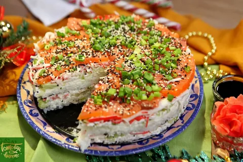 Суши-торт: слоёное чудо в кольце.