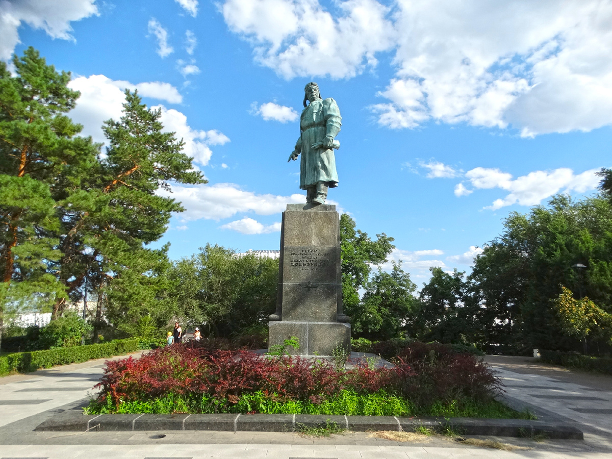 А в конце 50-х пьедестал был заменён на современный. Вместе с заменой пьедестала, фигуру Хользунова повернули по часовой стрелке на четверть. И если изначально Хользунов смотрел куда-то вниз по Волге, то теперь он стал смотреть в просвет улицы Ленина. То есть памятник принял тот вид, который мы все знаем.