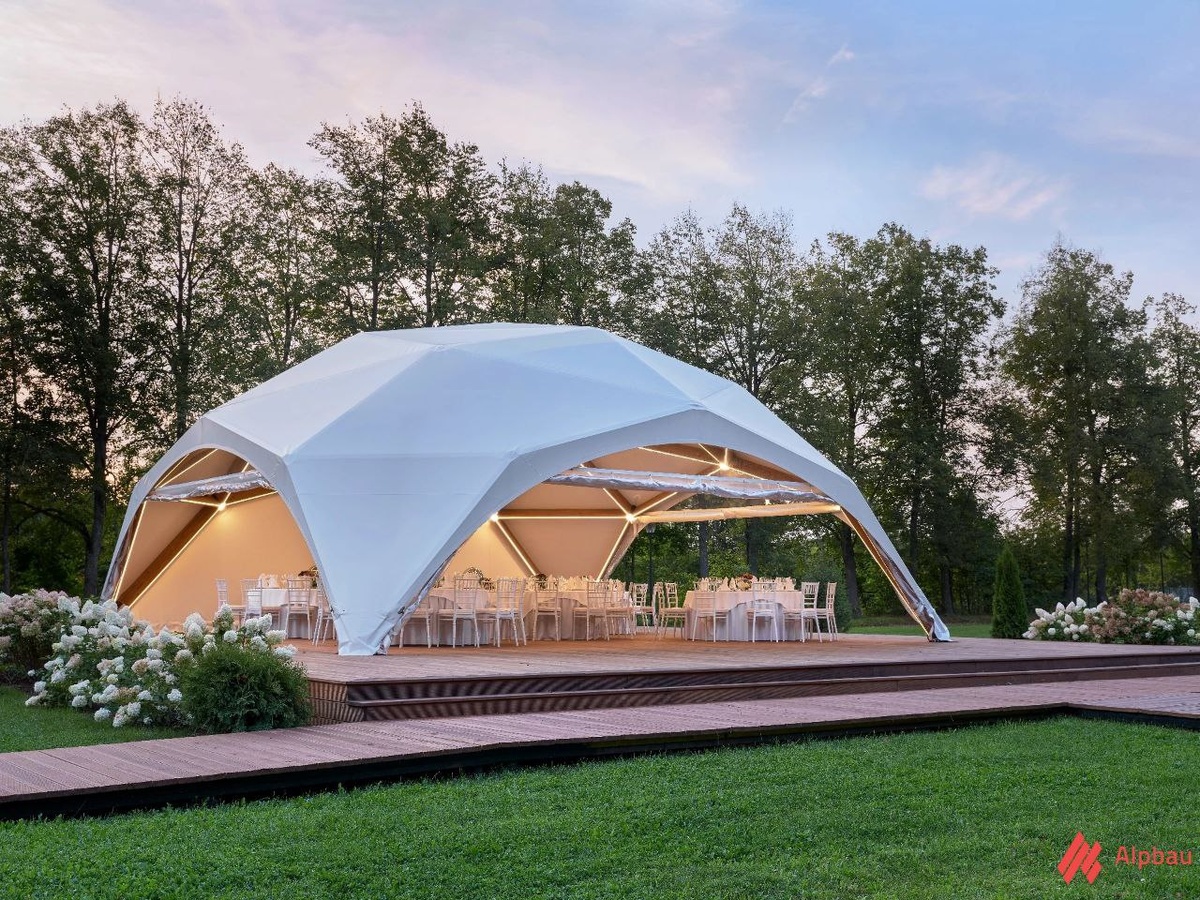 🅰️ Идеальная площадка для торжеств премиум-уровня: Квадросфера Alpbau в Подмосковье Конструкция размером 10x10м возведена в парк-отеле "Воздвиженское" под Серпуховым. Локация идеально подходит для банкетов и торжеств до 60 гостей. Светодиодная подсветка и освещение «звездное небо» создают особую динамичную атмосферу внутри и днем, и ночью. Квадросфера активно используется уже несколько лет, и за это время в ней прошли сотни мероприятий. Преимущества Квадросфер Alpbau: • Выдерживают практически любые снеговые и ветровые нагрузки • Возможна круглогодичная эксплуатация за счет утепления каркаса и остекления проемов • Стильный дизайн привлекает гостей и позволяет увеличить средний чек • Размер – от 5х5м до любых индивидуальных • 7 вариантов покрытия и 4 варианта освещения • Cрок службы конструктива – 50 лет • Конструкции можно соединять друг с другом, увеличивая необходимое пространство • А также разбирать и перевозить на другое место Нами построено более 1000 Квадросфер® по