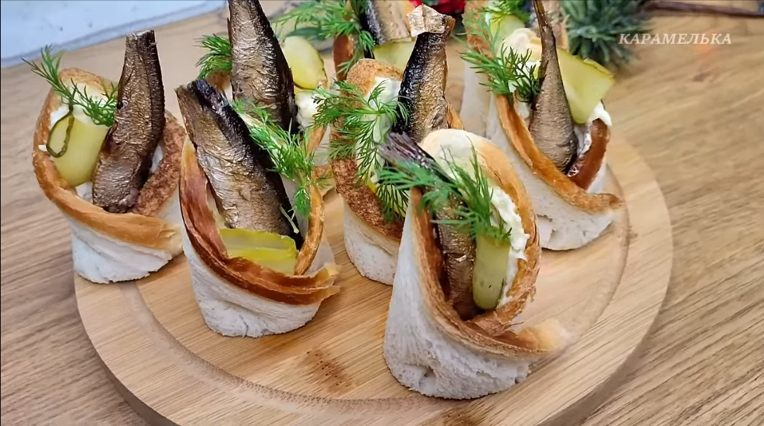 Здравствуйте, мои хорошие! Перед праздниками у меня всегда одно и то же состояние: вроде бы хочется чего-то нового, необычного, чтобы гости ахнули, но при этом без многочасового стояния у плиты и нервов. Особенно это знакомо в новогодней суете, когда дел и так хватает. И вот именно в такие моменты я достаю этот рецепт. Закуска со шпротами вроде бы простая, из понятных продуктов, но подача решает всё. На столе она выглядит нарядно, аккуратно и сразу притягивает взгляд. Проверено: гости первым делом тянутся именно к ней, а потом обязательно спрашивают, как вы это сделали. Эта закуска выручает меня уже много лет. Готовлю её не только на Новый год, но и на дни рождения, семейные посиделки и даже когда гости нагрянули неожиданно. Минимум хлопот, максимум эффекта. Ингредиенты: Хлеб тостовый 4 шт Перец сладкий 1 шт Помидор 1 шт Огурец 1 шт Шпроты в масле 1 банка Лист салата 2 шт Майонез 50 гр Веточка укропа Как приготовить: 1. Для начала подготовим хлеб. 2. Каждый ломтик аккуратно раскатыв